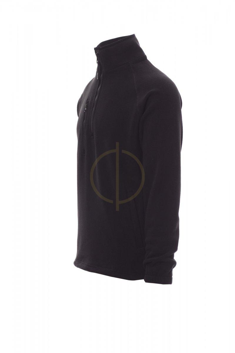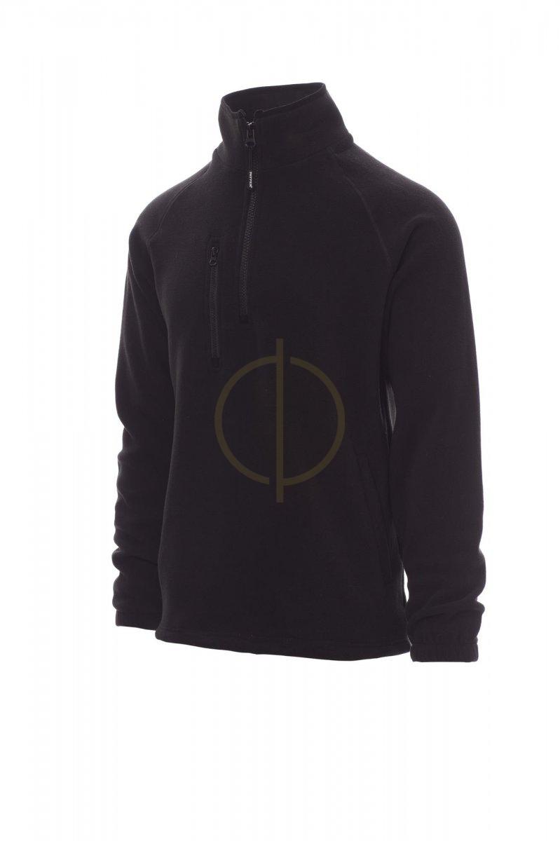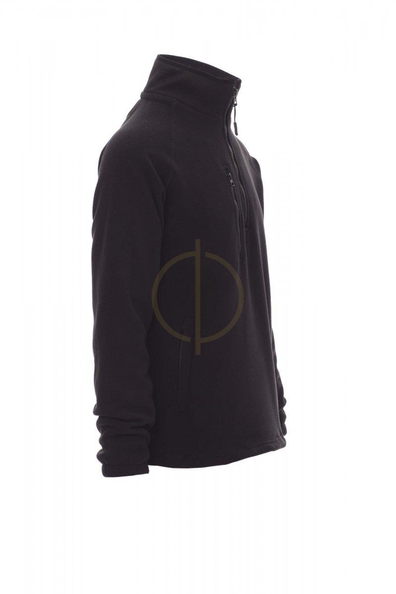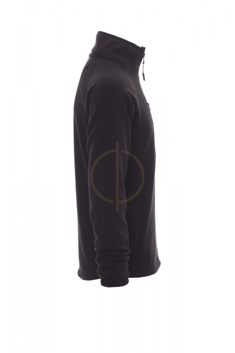 Flis s crnim plastičnim patentnim zatvaračem od 8 mm, raglan rukavima, podesivom uzicom u struku, elastičnim manžetama, dva džepa sa skrivenim patentnim zatvaračem, jednim prednjim džepom na patentni zatvarač, ovratnik s kontrastnom trakom za pojačanje, ojačani šavovi.