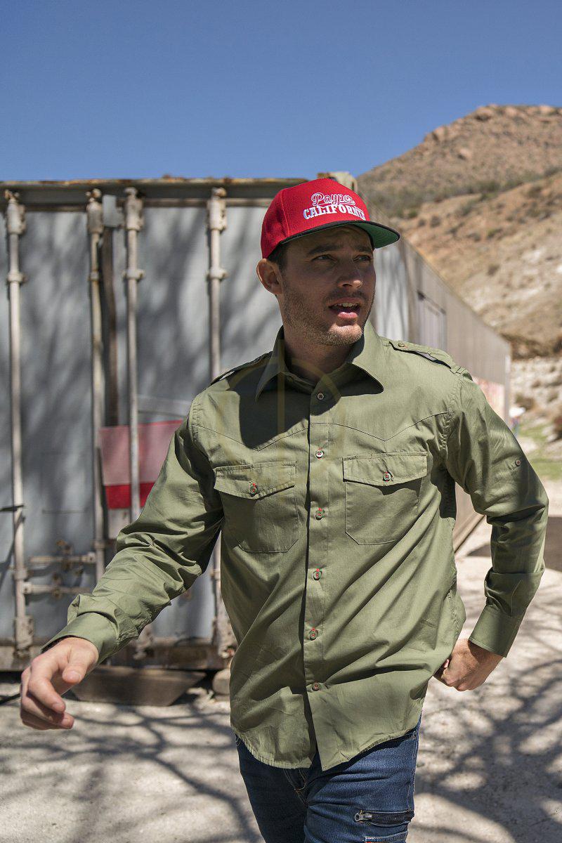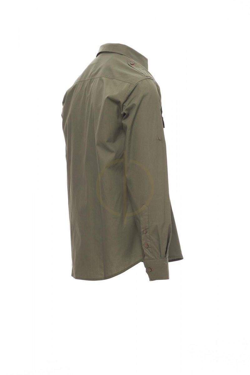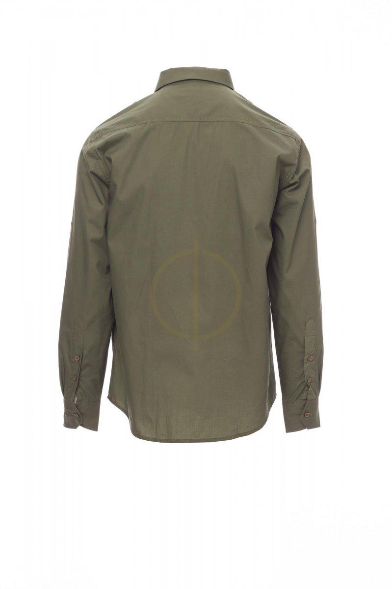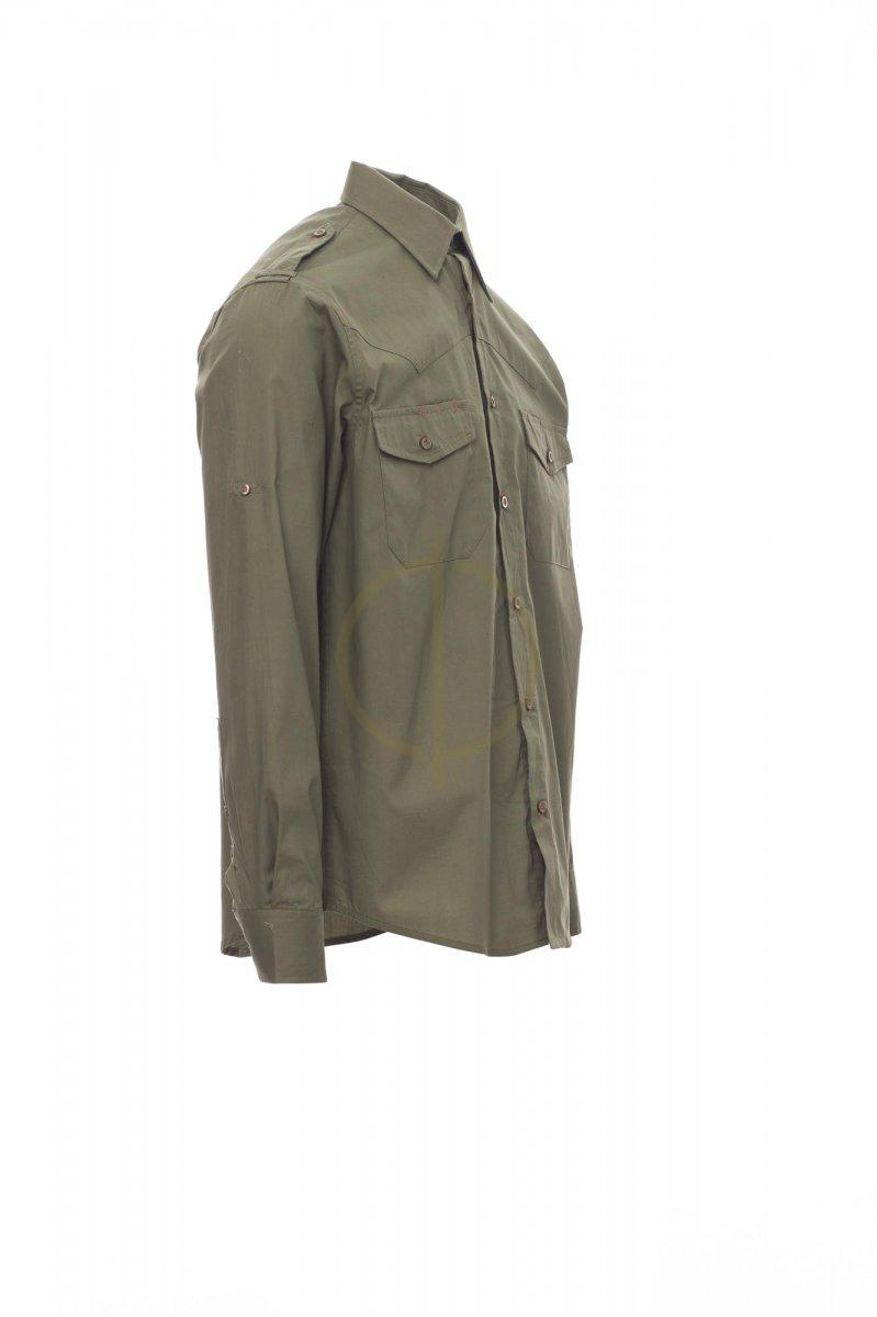 Muška blago strukirana košulja od fine češljane tkanine s talijanskim ovratnikom, manžetnom s dva gumba i rupicom, vidljivim šavom i gumbima u odgovarajućoj boji i kontrastnim crvenim rupicama, glatkim oblikom sprijeda, naramenicama, dva džepa na prsima s preklopom, trakom s gumbom oko ruke za praktično podvrtanje rukava.