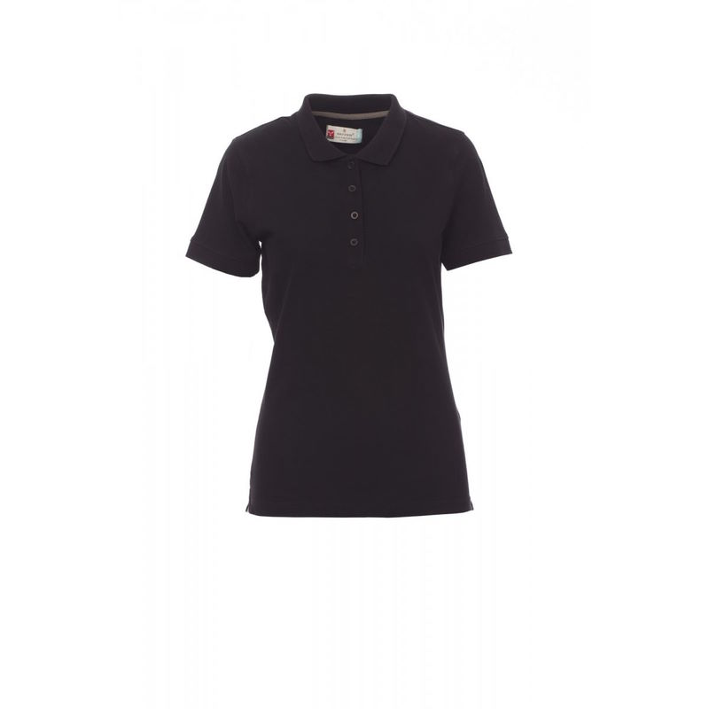 Ženska pripijena polo majica kratkih rukava s 4 odgovarajuća gumba s efektom sedefa, rebrastim ovratnikom i rubom rukava, bočnim otvorima,