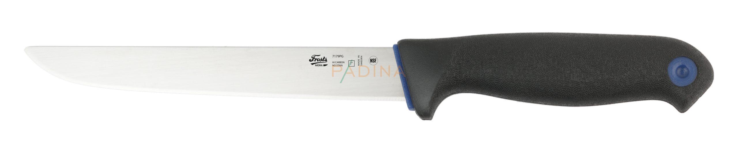 Stvrdnuto dubokim hlađenjem na -80 stupnjeva za maksimalnu tvrdoću. Tvrdoća: 58 HRC. Konzistentna, visoka kvaliteta noževa za prehrambenu industriju Frosts Mora omogućuje korisnicima da od njih dobiju veliku korist i zadovoljstvo tijekom dugog vremenskog razdoblja. Njihov dug životni vijek snažan je faktor koji pridonosi Frosts noževima,