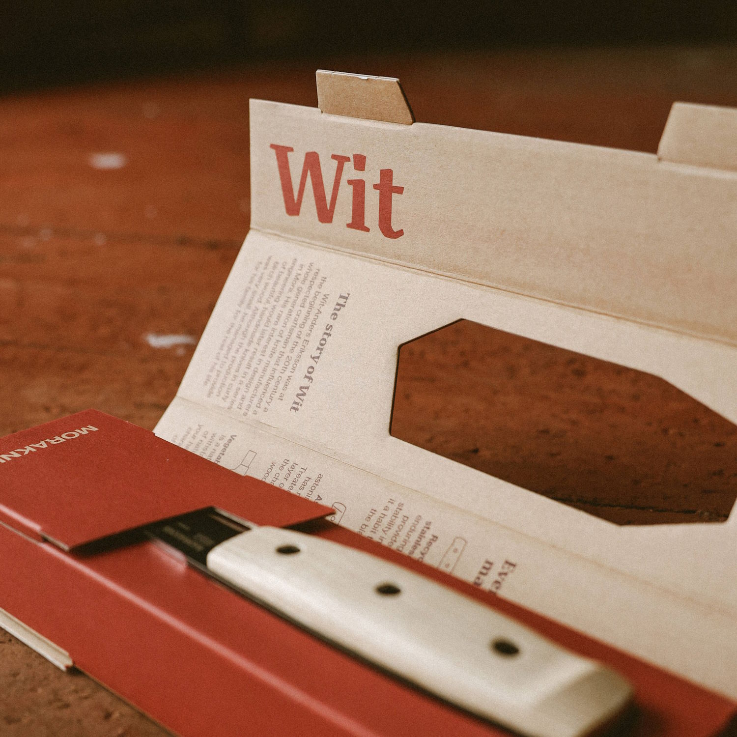 Jedinstvena drška od pomno odabranog drva jasena ima funkcionalnu petu za držanje i 2,5 mm debelu, crnu oštricu noža od recikliranog švedskog nehrđajućeg čelika, koja daje snagu i stabilnost u svakom rezu. Zahvaljujući dizajnu oštrice i drške, nož je dobro izbalansiran i posebno razvijen za precizan rad. Crni PC premaz stvara uravnotežen kontrast između svijetlog drva jasena i sjajnog ruba oštrice. Korice od biljno štavljene kože imaju omču za remen i štite oštar rub od površina koje mogu učiniti nož tupim. Wit je također kompatibilan s dodatkom Morakniv Dangler 10 s gumbom, koji vam omogućuje produljenje udaljenosti između korica noža i remena.