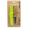 Ergonomska ručka je u obliku bačve od prirodnog pluta ima značajke “soft friction grip”, čvrsti štitnik za prste i oštricu debljine 1,4 mm od švedskog nehrđajućeg čelika, koja pruža snagu i stabilnost u svakom rezu. Zahvaljujući dizajnu oštrice i ručke, ovaj nož je idealan za siguran i učinkovit rad u različitim vremenskim uvjetima tijekom cijele godine. Polimerni omotač opremljen je Morakniv Smart Button System-om što znači da možete jedan na drugi pričvrstiti nekoliko noževa za različite namjene.