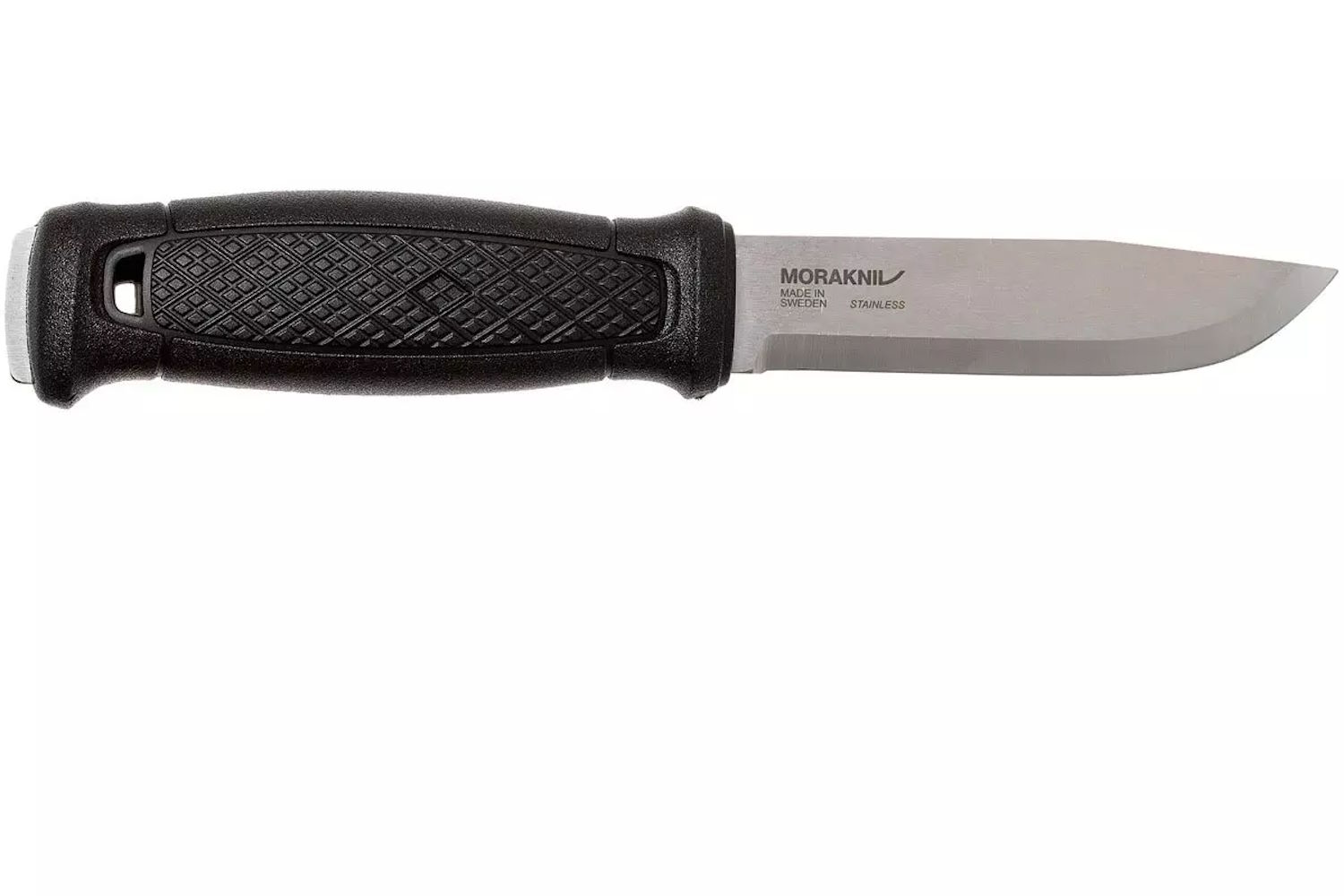 Ergonomska polimerska ručka u obliku bačve ima frikcioni rukohvat, štitnik za prste i oštricu debljine 3,2 mm izrađenu od recikliranog švedskog nehrđajućeg čelika, koja pruža snagu i stabilnost pri svakom rezu. Zahvaljujući dizajnu oštrice i drške, nož je idealan za siguran i učinkovit rad u različitim vremenskim uvjetima tijekom cijele godine. Izdržljiva kožna navlaka lako se pričvršćuje na remen.