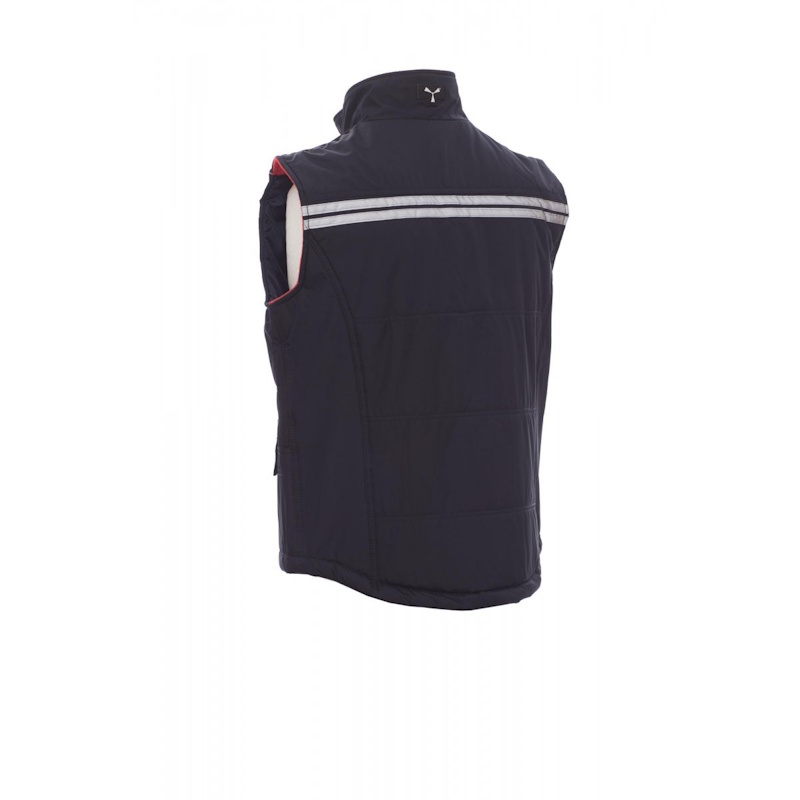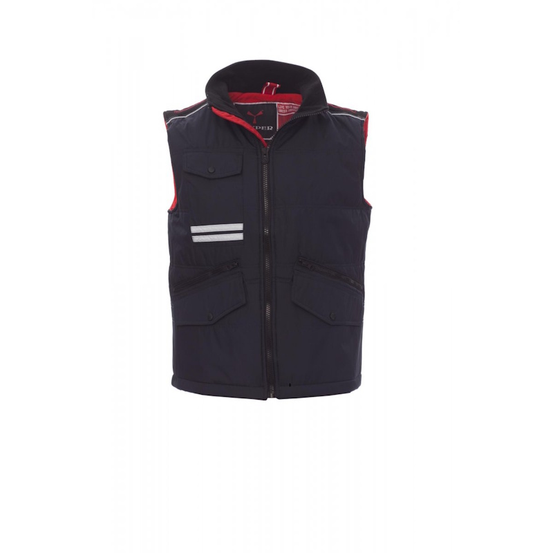 Unisex prsluk, plastični patentni zatvarač od 8 mm s metalnom ručkom, s preklopom i plastičnim gumbima, oblikovana leđa, dva vanjska džepa LOCK SYSTEM, dva džepa s patentnim zatvaračem, kosi džepovi za lakši pristup, jedan džep za pametni telefon na prsima i prsten za držač značke, reflektirajuće pruge na džepu i leđima. Podstavljena, kontrastna flis podstava na leđima i ovratniku, jedan džep, unutarnji patentni zatvarač za lakši tisak i vezenje.
