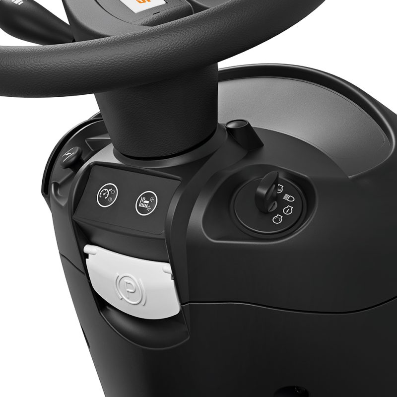 Upravljanje uređajem je olakšano zahvaljujući voznom pogonu s 1 nožnom pedalom. Za još bolju udobnost vožnje tempomat se uključuje jednostavnim pritiskom na tipku. Na taj način možete automatski kontrolirati brzinu vožnje bez potrebe za pauzama. Pomoću LCD display-a, i pri jakom sunčevom svijetlu, možete očitati sve važne informacije. Košara za travu zapremnine 350 litara dizajnirana u obliku bagerske žlice tzv. kipersko izbacivanje otkosa koje omogućava potpunu napunjenost košare tijekom rada i lako i jednostavno pražnjenje. Pokazivač napunjenosti košare prikazuje kada je potrebno pražnjenje košare za travu.