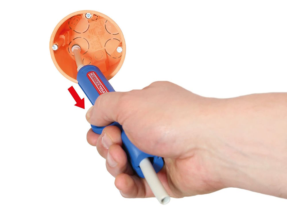 Okrugli skidač kabela br. 13 osigurava sigurno i praktično skidanje izolacije sa svih uobičajenih kabela za okrugle i vlažne prostorije promjera 6,0 – 13,0 mm (npr. NYM kabel 3 x 1,5 mm² do 5 x 2,5 mm²). Dubina rezanja ne mora se regulirati ručno. Novo radno područje stoga je također prikladno za manje promjere kabela od 6 mm, kao što je 3 x 0,75 mm². Zahvaljujući ergonomskom obliku ručke, alat je posebno jednostavan za korištenje. Izražena ručka znači da okrugli skidač kabela br. 13 udobno i sigurno leži u ruci i ne klizi. To olakšava svakodnevni rad i povećava sigurnost. Zahvaljujući novom rasporedu oštrica, nema začepljenja pocinčanih noževa ostacima omotača. U kućište je ugrađen graničnik duljine za moguće male serije ili za sastavljanje kabela s istim pomaknutim dimenzijama. Dužinski graničnik treba postaviti u rasponu od 3 do 10 cm u koracima od 0,5 cm.